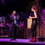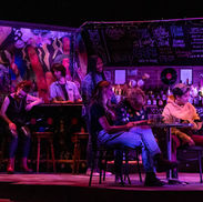 Airness follows a young woman's journey of self discovery as she ventures into the world of competitive air guitar. Encouraged by her newfound friends, Nina determines if she can find the Airness within herself and make to the national championships. The setting of Airness takes place in multiple dive bars around the country, locales include New York City, Chicago, Boston, San Diego and Staten Island, as well as the grand finale set in Los Angeles. When approaching this design I sought to create a setting that had the feeling and atmosphere of a local dive bar hangout that can easily be converted to represent multiple locales through changes in set dressing and the use of flown elements. I also sought to be able to transform the stage for the grand finale to create a distinct and memorable atmosphere suitable for the climax of the play.
